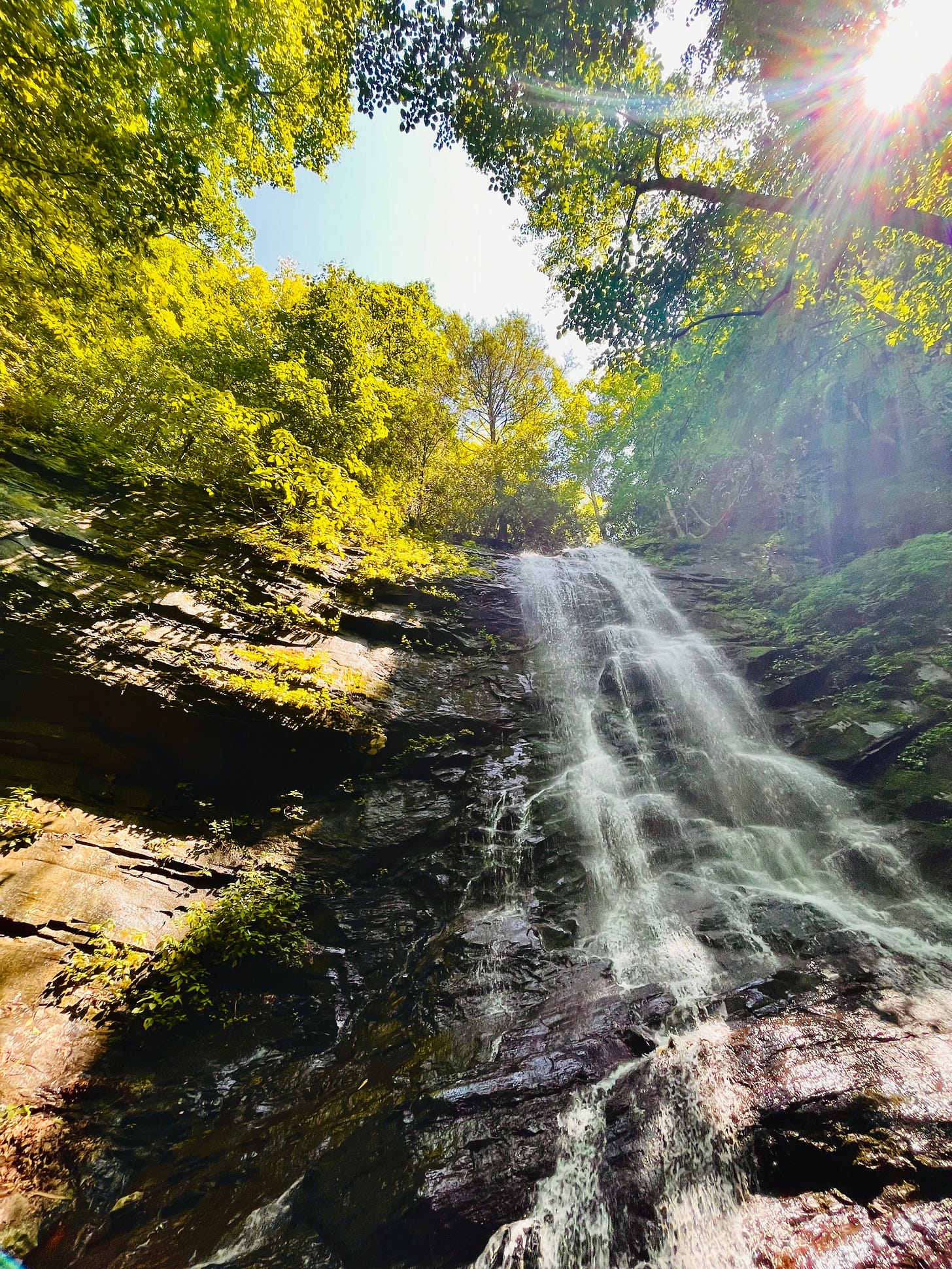 Yesterday we went on a short hike, to the falls nearby. We deeply inhaled the earthy scents of the dirt and moss and trees. We sunk our toes into the cold mountain water. The kids flipped rocks looking for salamanders and crawdads, in their own competition of who could find the most. There was laughter there. And quiet, too. As I stretched my head toward the pocket of light above us, I watched as a purple butterfly, with dusk catching on its wings, flutter alone in the sky high above. I watched him for a long time.
